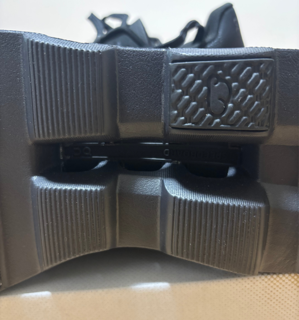 見えづらくて申し訳ないですが、ミッドソールの中にプレートが入っています。